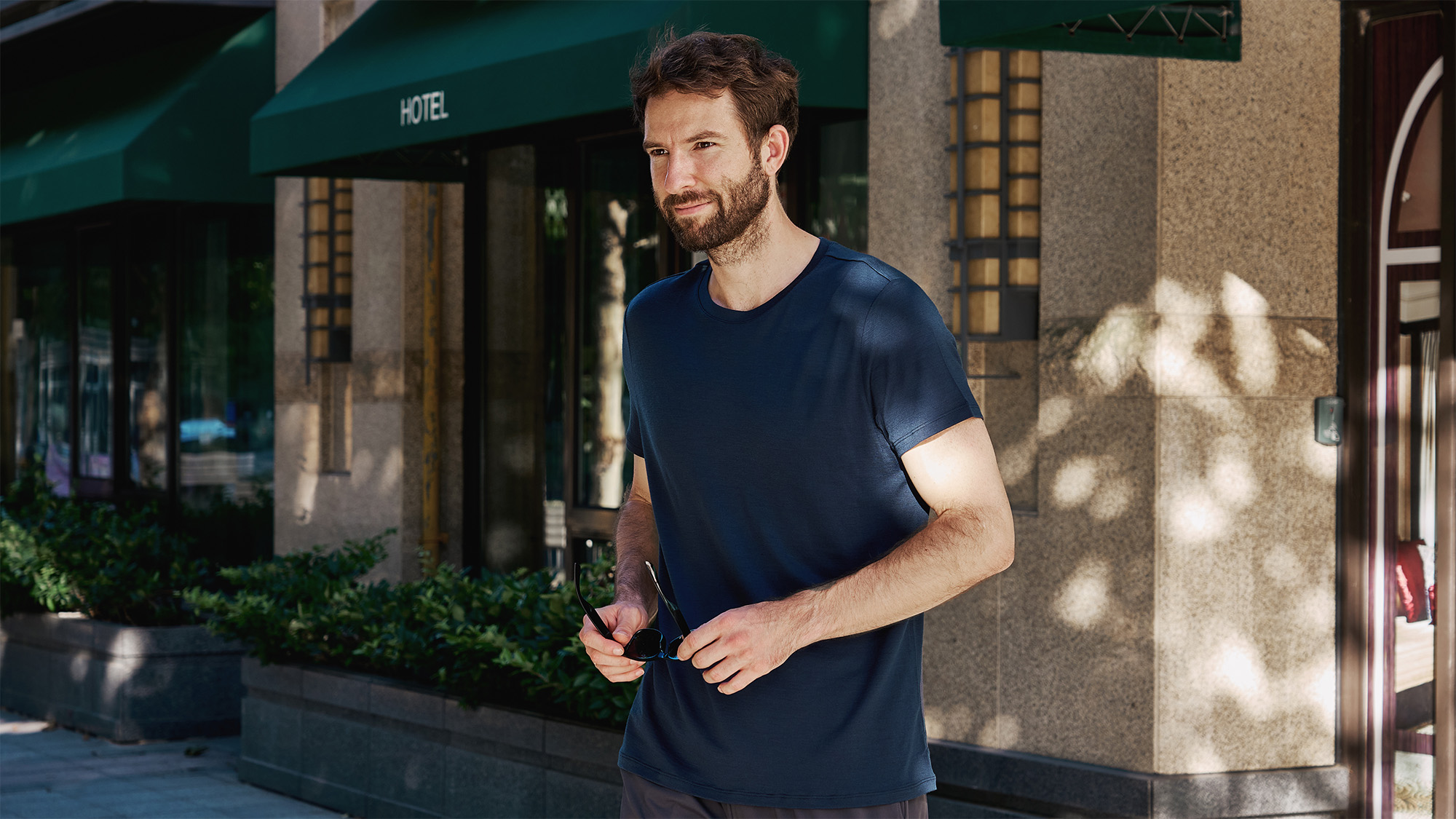 It feels completely different to the touch than the traditional wool you’re thinking of. It’s light and soft on the skin and with its moisture-wicking properties, it maintains that smooth feel all day, even when you perspire while wearing it.
