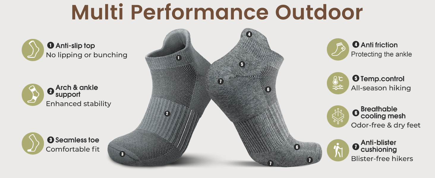- Breathable, moisture-wicking, anti-blister, odor resistant.